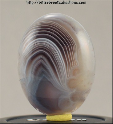 The piece this Botswana Agate cabochon came from reminded me of a broken stalactite: oval in shape and revealing what this agate looks like "outside" the cool patterns we like so much. There was just enough rock to cut this 30x40 oval. For the record, I hate cutting ovals (too much work), but I actually like this one!
