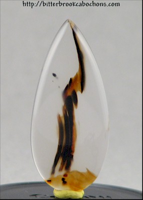 This knockout Montana Agate cabochon has a black & brown lightning bolt streaking right down its middle! Sorry, all; this one is staying in my personal collection.