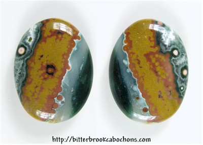 You CAN'T HAVE this one! I couldn't decide which side of this piece of Ocean Jasper should be the front, so I domed BOTH sides. Looks like a Boy Scout's sash, doesn't it? I decided to keep this bad boy for my collection.