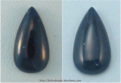 If you're one of those folks who like DARK blue Sodalite, this is your cabochon! One itty-bitty white spot on the left center and some faint white traces at top and bottom. VERY nice! 29mm x 16mm x 6.5mm. Weight: 20.05 carats. Every one of my cabochons is custom cut to take the best advantage of the particular slab from which it is fashioned. Colors may vary somewhat from what is pictured due to differences in computer monitors. Click the image on the right to see the cabochon super-sized... |